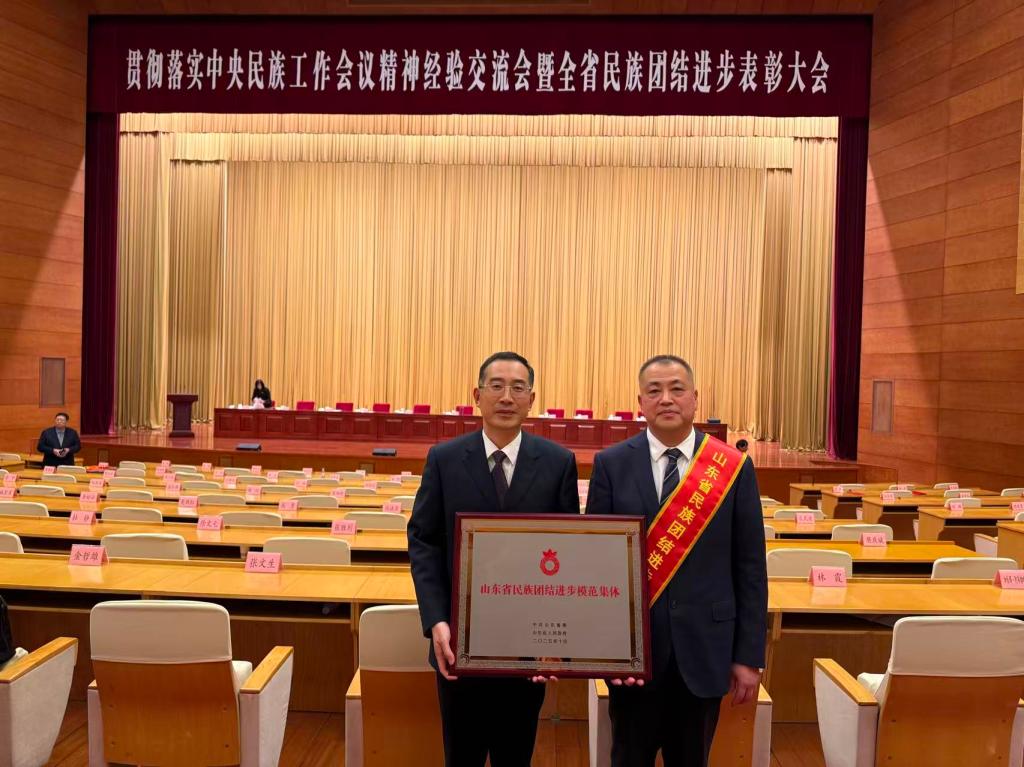 会上,宣读了山东省民族团结进步模范集体和模范个人表彰决定,表彰了全省2020年以来为民族团结进步事业作出突出贡献的79个模范集体和80名模范个人,省领导为受表彰代表颁奖。山东工艺美术学院中华民族视觉形象研究创作团队荣获“山东省民族团结模范集体”荣誉称号,团队负责人山东工艺美术学院副院长孙大刚作为受表彰代表上台接受颁奖。我校是全省高校中唯一获此殊荣的单位。